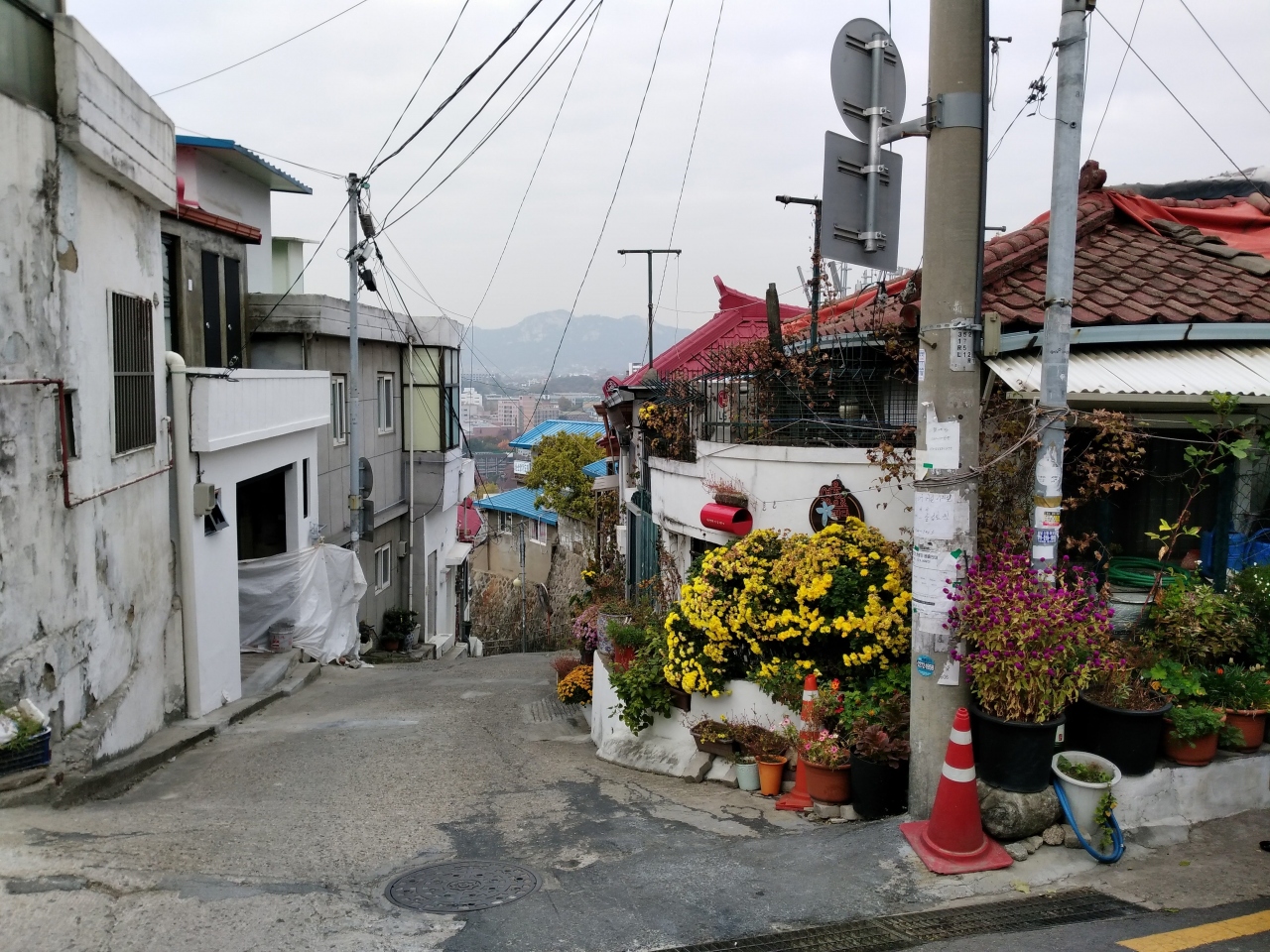 城郭沿いは城郭外に広がる、斜面にびっしりと建ち並んだ町のロケーションも面白く、ソウルの町並好き(?)の人にお勧めルートです。