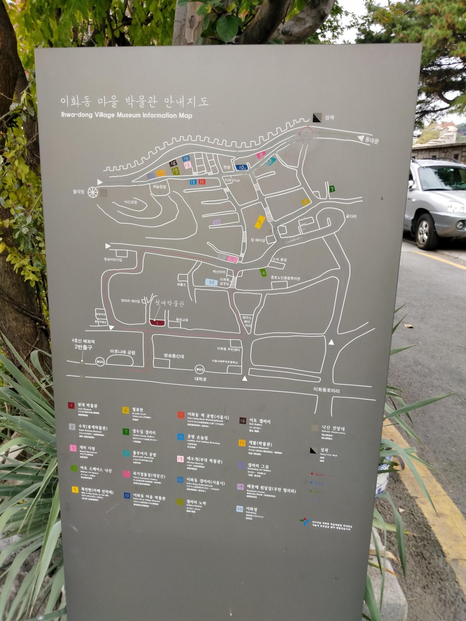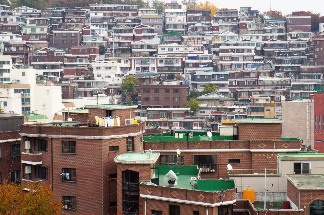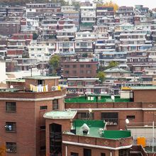 東大門城壁公園に入り城郭沿いを上っていくと、左側に梨花洞の町が広がっています。