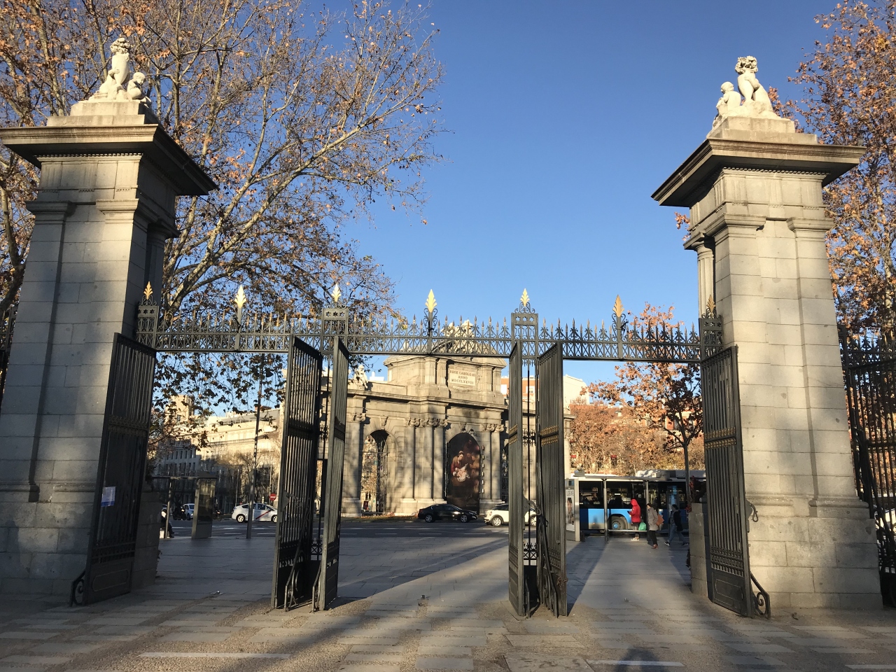 プラド美術館の裏手にある広大な公園です。とても広い公園なので、入口もいくつかあります。アルカラ門のすぐ近くにも入口がありました。公園の入口にはちゃんとした門があって、夜間は閉鎖されます。緑も多く、散策に良さそうな公園でした。