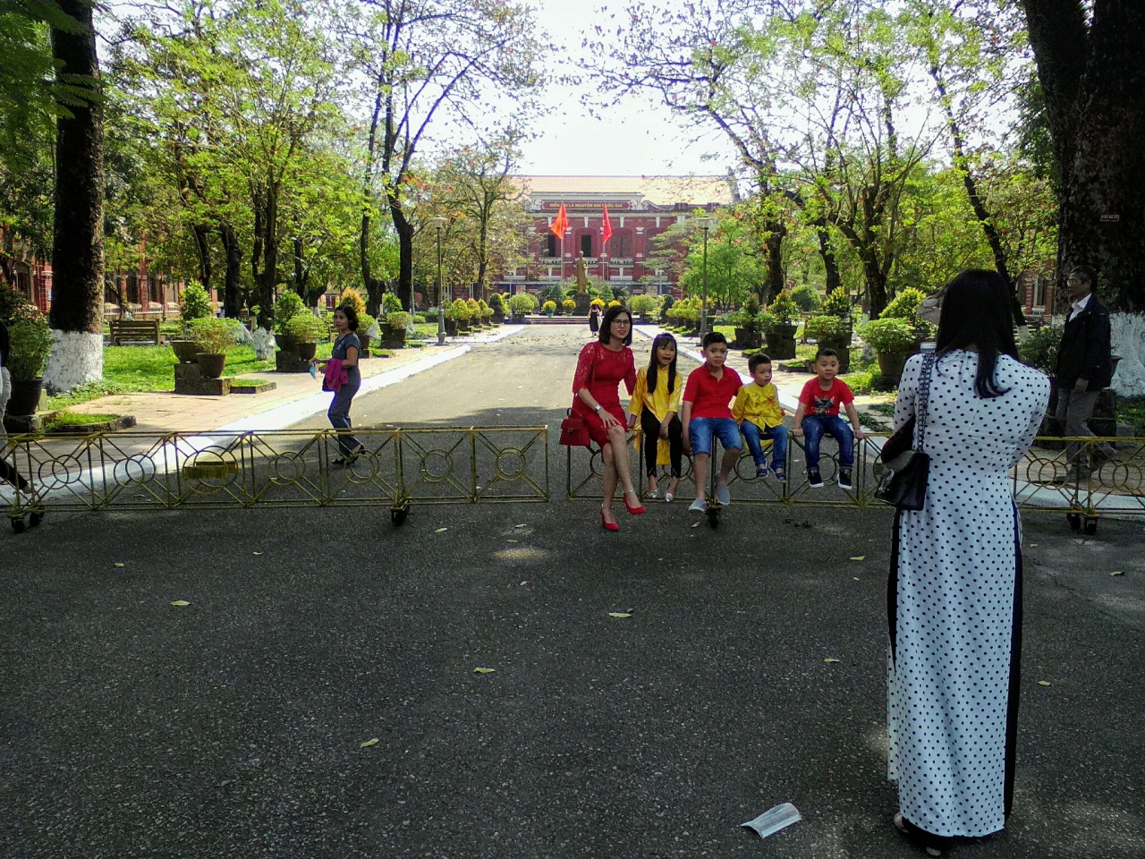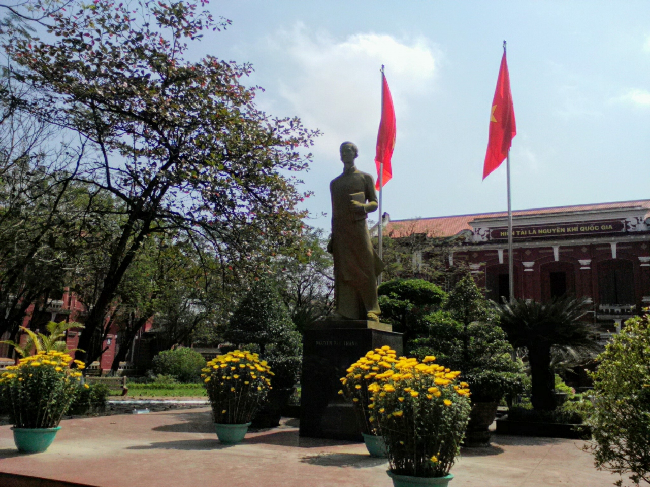 ホーチミン氏も卒業した名門高校です。校庭には若かりし日のホーチミン(当時の名は「Nguyen Tat Thanh」)の像もありますが見学できるかは微妙なところ。まず、授業中は校内への立ち入りはできません。放課後ならも守衛と交渉すれば入れるかもしれません。今回私が訪れたのはテト(ベトナム旧正月)中だったので校内は開放されていました。ホーチミン像も菊の花で飾られた“テト仕様”。この時期にしか見られないのでラッキーだったかなと思います。