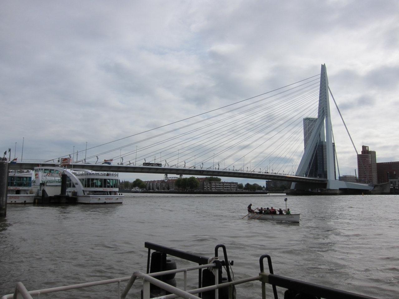 地下鉄のLeuvehavenから港方面に歩いていくと見えてくる橋で、その橋の袂から手前に湾内クルーズの出発場所、次に水上バスの乗り場があります。橋はとても優雅な佇まいで、遠くからでもその姿が見えるので目印になります。