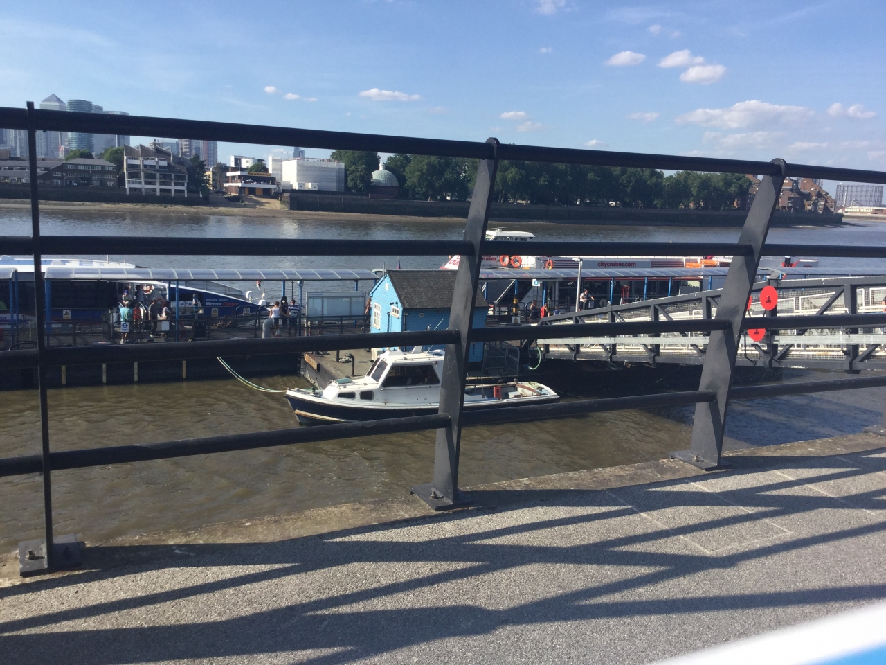 グリニッジ ピア (フェリーターミナル)からタワーピアまでリバーボートで帰りました。