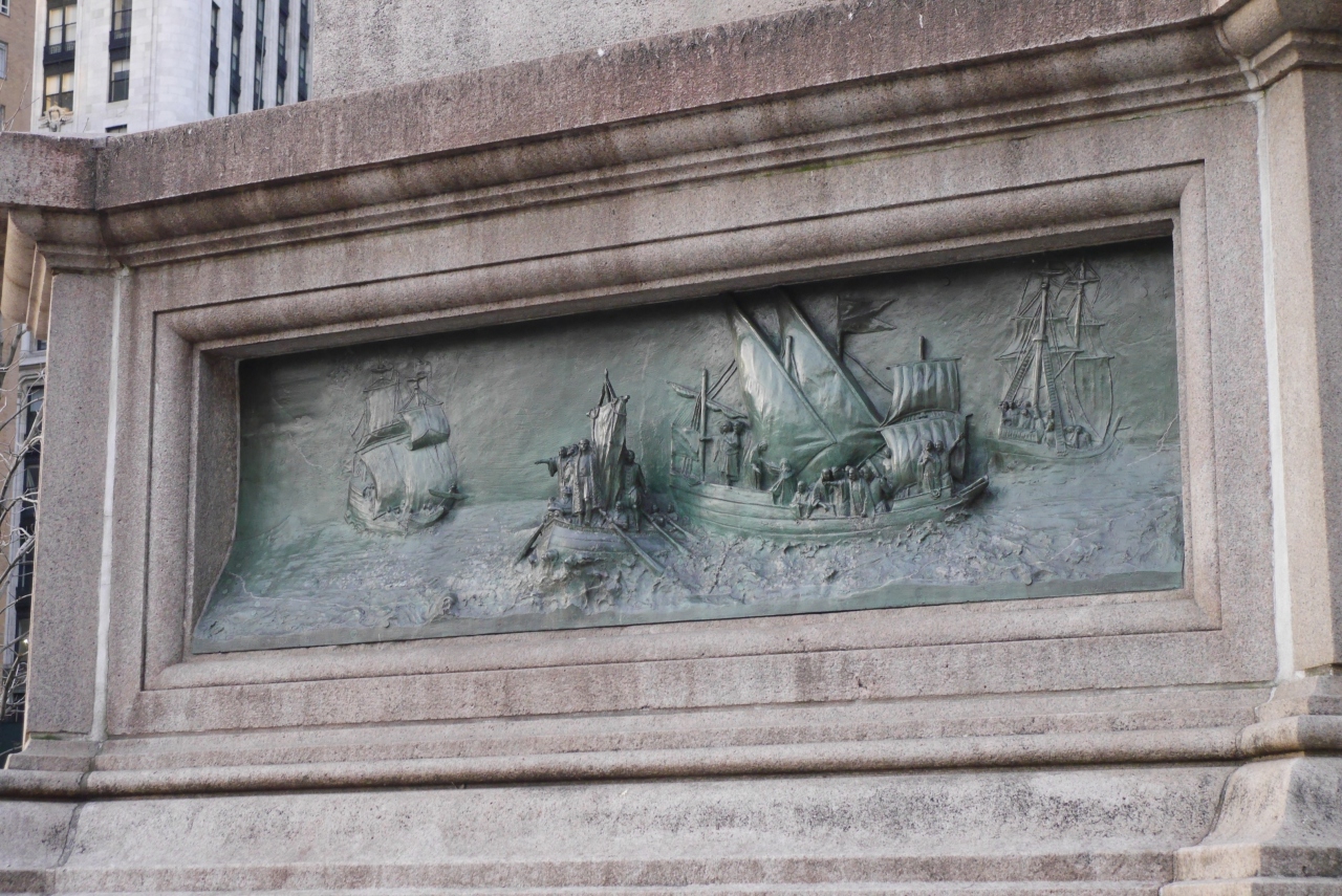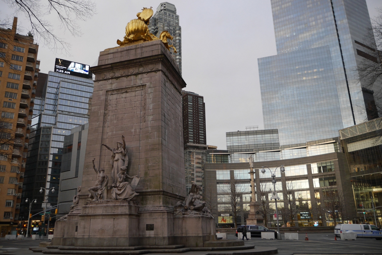 タイムワーナービル、トランプ インターナショナルホテル&タワーズ等で囲まれ、セントラルパーク側にはMerchants Gateがありメイン号鎮魂碑が置かれています。コロンブス像が大理石製であるのに対し、こちらの像は金色に輝き、まるでこちらが主役のように見えてしまいます。