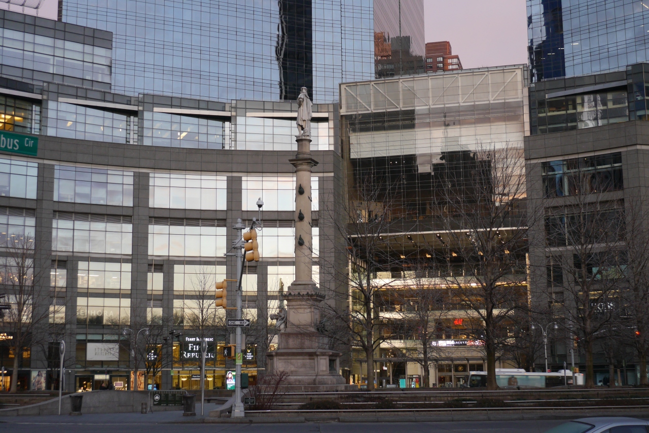 NYセントラルパークの南西端にある交差点で1905年に完成し、1世紀後再開発されたものでアメリカ初の円形交差点です。交差点の中は公園になっていて、劇場のようなベンチが並び、中央にコロンブスの像が塔の上に置かれています。ブロードウェイ、8番街、西通り、南通りが交差するこの場所がNYの位置の基準点になっています。