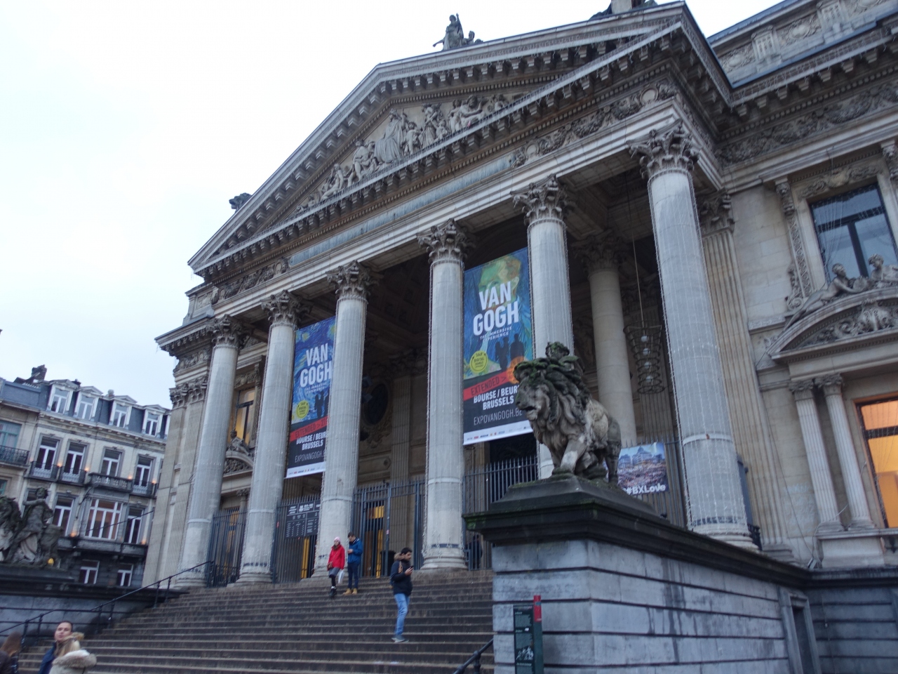 「ブリュッセル証券取引所」は、最初目にした時は美術館か博物館だと思いました。ファサードに多数の円柱を配し、ヨーロッパならではの荘厳な建築物です。内部には入れませんが、グランプラスから徒歩5分強なので、外観だけでも見る価値はあります。