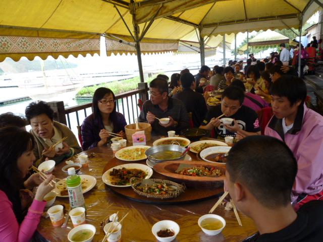 日月潭観光の後は、湖畔で食事。お腹が空いていたせいか旨かったです。