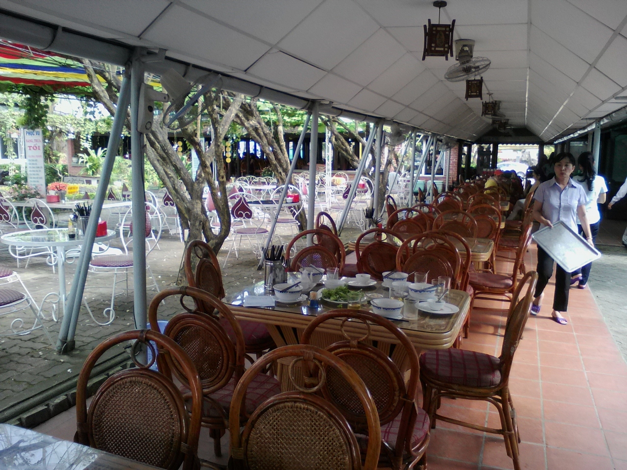 レロイ通り、フースアン橋近くにあるベジタリアン レストラン。オープンテラス風で開放感があり、気心地のよいスペースです。店内が広いせいもありますが、客があまり入っないないので静かにのんびり過ごせます。
