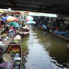 規模は小さいく、ローカルなマーケットで、川の上にレストランがあり食事出来ます。