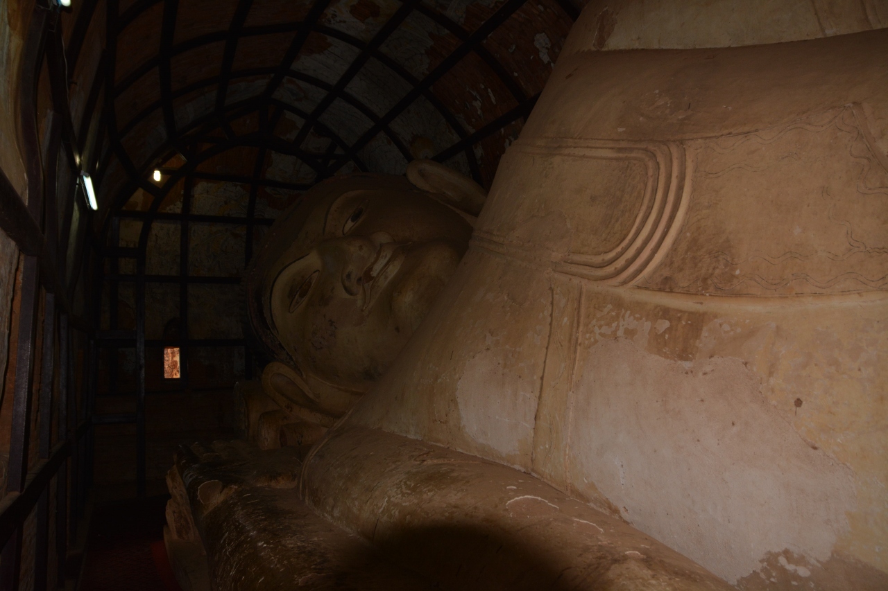 ニャンウーのゲストハウスからレンタルバイクでオールドバガン方面へ向かいました。有名なアーナンダー寺院から見ると国道2号線を挟んで南側に入っていきます。私は夕日のスポットを探しつつ偶然このあたりに入り込みました。