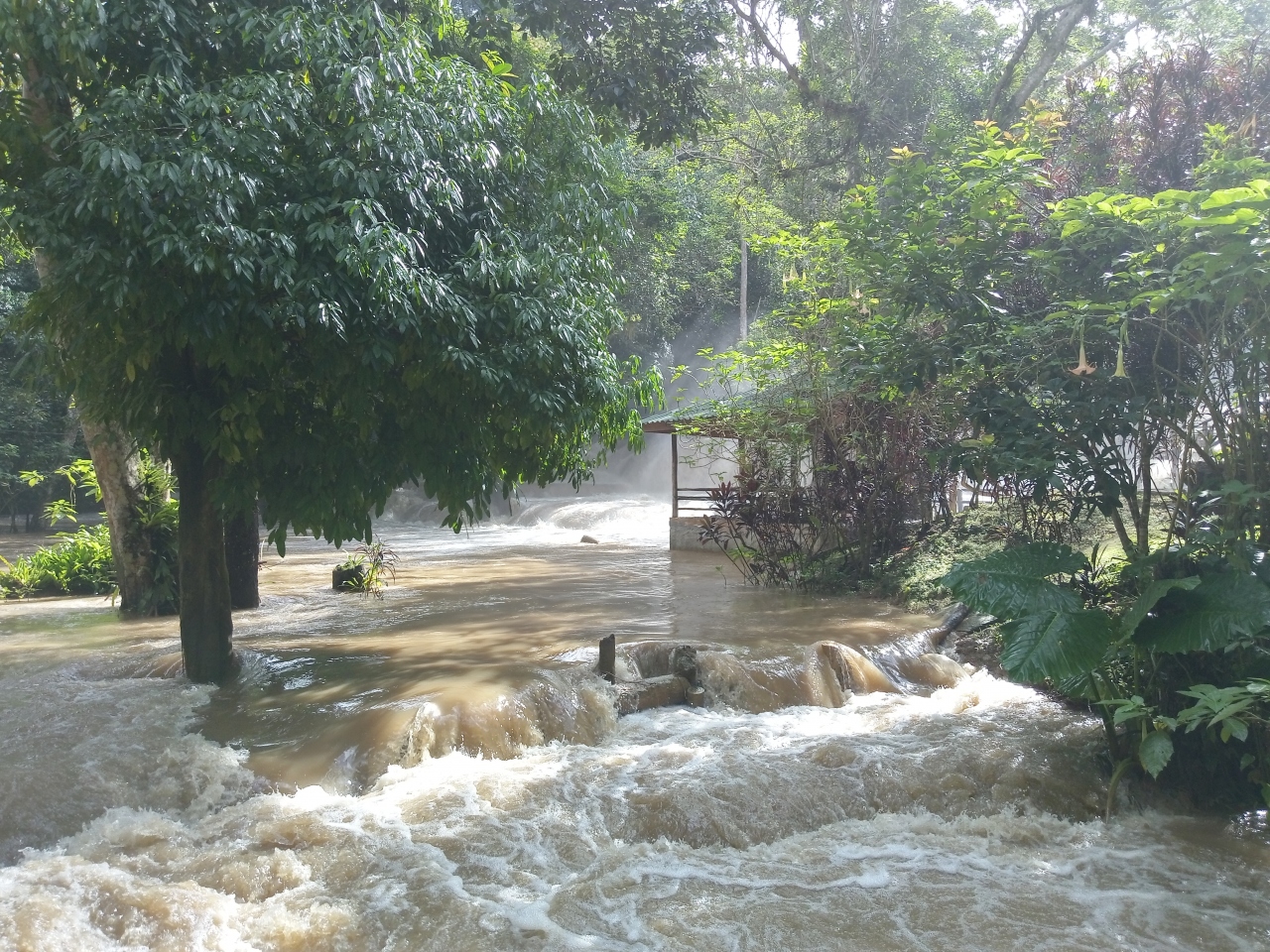 セー滝は雨季の方がきれいに見えると聞いていたのですが、大雨の後で激流でした。トゥクトゥクで交渉して、セー滝までの船着き場に行きました。ゾウに乗って滝の中を歩くことができます。乾季は水があまりないこともあるようです。地元の人に水量を聞いてからいくといいと思います。