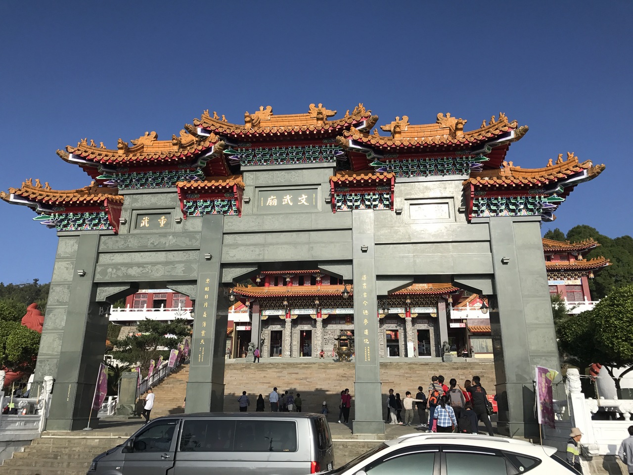 周遊バスで行きました。独特の狛犬は、日本の狛犬より、スゴく大きい。入り口?の張りぼてのようですが、かなり大きいので、道路を渡って撮りました。孔子が祀られているとの事です。建物の朱が美しいです。文武廟から見える日月潭が美しいので、道路を渡る価値はあります。