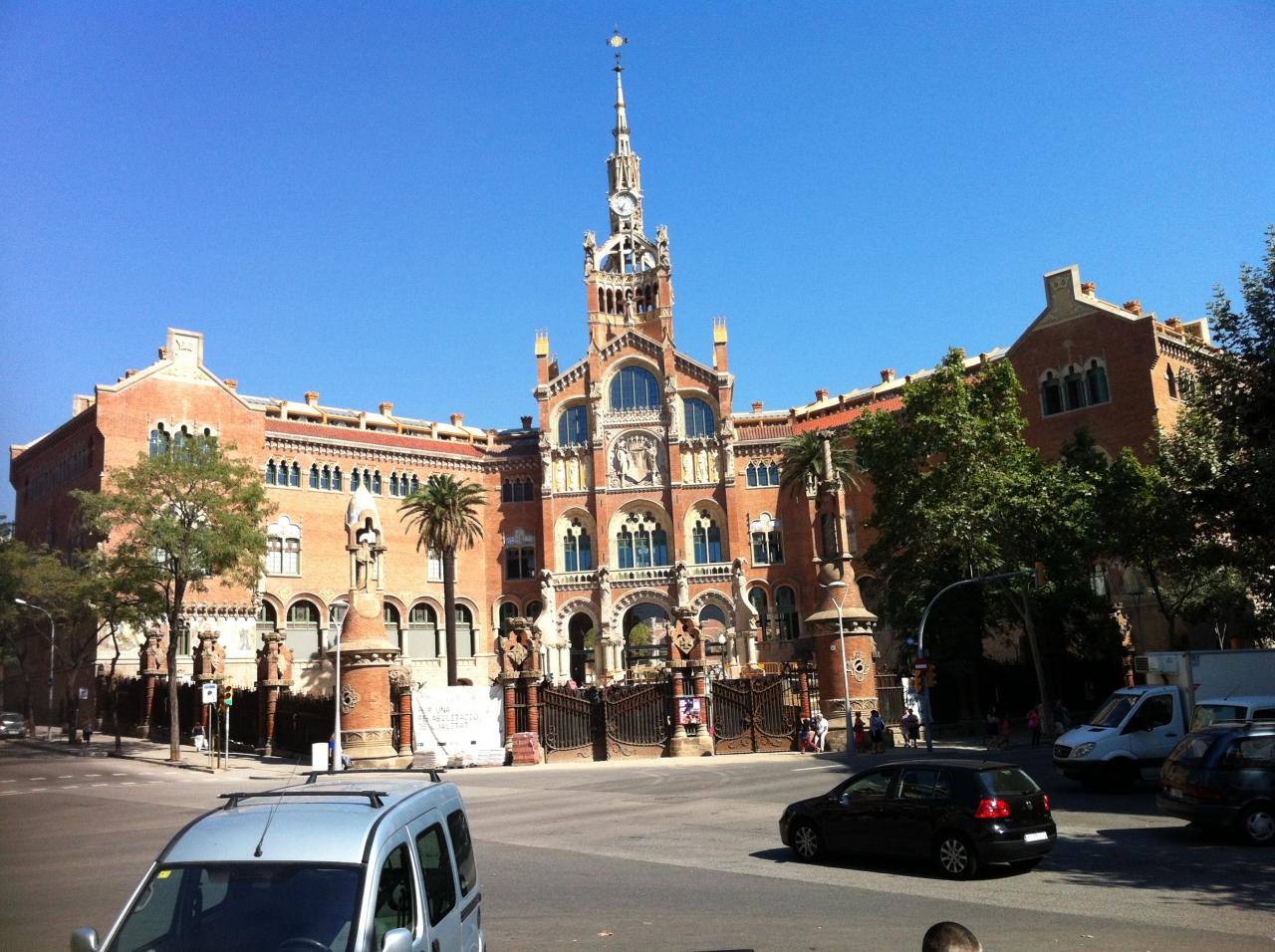 サグラダファミリアからガウディどおりを歩いて突き当たりにサンパウ病院があります。カタルーニャ音楽堂とともに世界遺産になったようです。中は入れませんでしたが、周りにタパスやバルがあって昼から楽しめました。