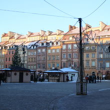 広場を囲むように建物があり ヨーロッパらしい建物 石畳の広場です