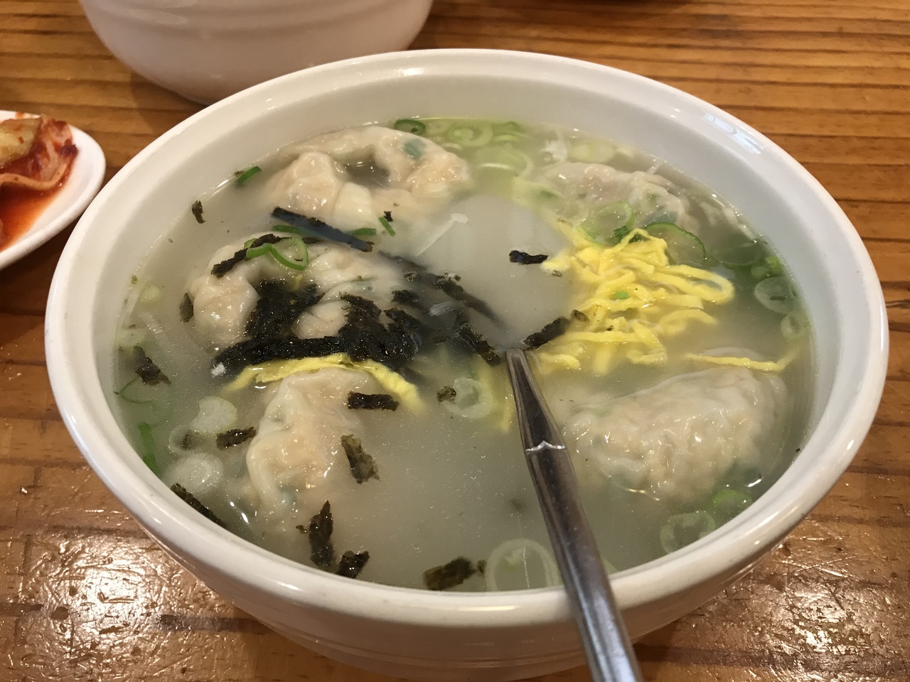 北村韓屋の観光後に、昼食で伺いました。混むらしいと聞いていたので、11時半には入店。でも、少し待ちました。牛骨カルグクスと餃子スープと王餃子を注文。どれも、かなりのボリュームでした。やさしい味わいで、美味しかったです。でも、餃子スープと王餃子は似ていたので、どちらか一つでもよかったかもと思いました。お店を出る頃には、さらにたくさんの人が待っていました。早めの入店がいいかもしれません。