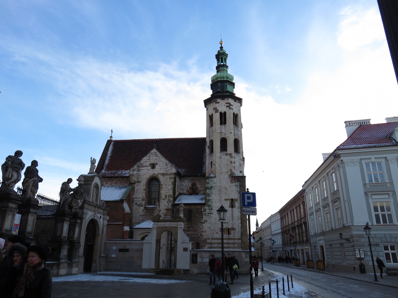 旧市街の中央広場を廻って、フロリアンスカ通りと対になっているグロツカ通りを進んでヴァヴェル城へ向かいました。この通りの周辺は教会など古い建物が多く保存されている地域で、特に教会の多さに驚きました。教会のファザードを見て歩くのも楽しいものでした。