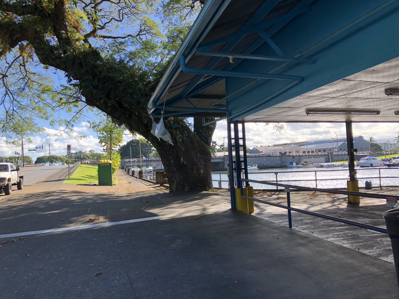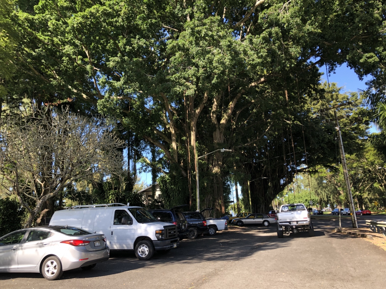 ハワイ島ヒロのカメハメハロードをカメハメハ大王像を右手に見ながら