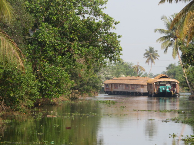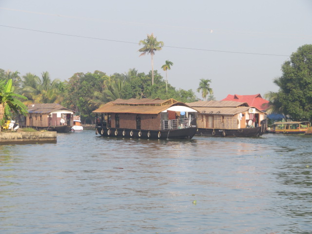 カーニャクマリから移動してアラップーラ(アレッピー)の乗船場まで行き、8人で貸切でハウスボートを利用しました、1泊しました、食事は乗船してすぐ昼食を取り、夕食と翌日の朝食も取りました、食事はホテルで食べたインド料理とほぼ同じようでした、客室はツインルームで部屋はちょっと狭いです、エアコンはついているので涼しかったですがシャワーの出は良くなかったです、快適ではないですがいい体験が出来ました。