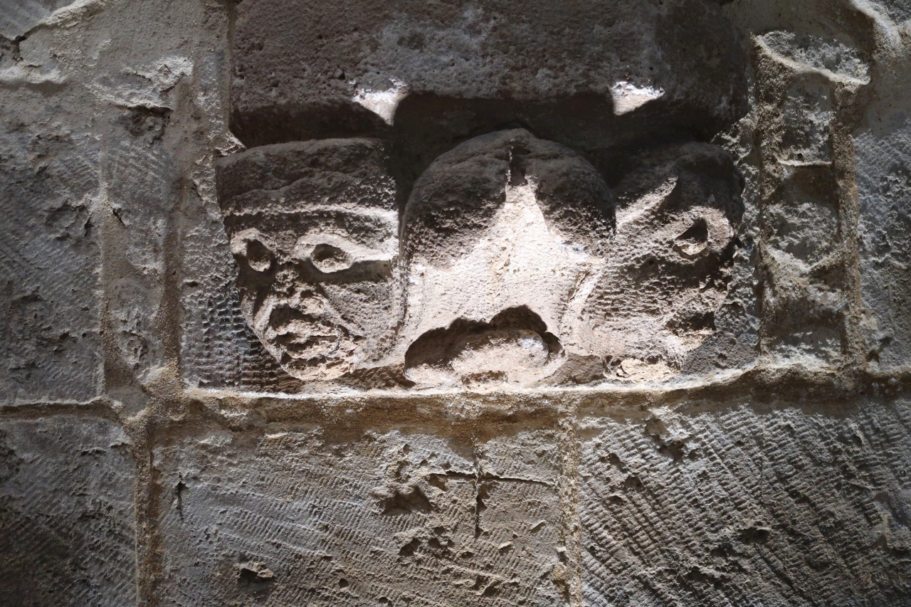 (逆さピラミッドの地下にマグダラのマリアの棺があるというのは突飛な話ですが、実際にルーブルの地下世界も見ることができます。二回も十字軍に行くほどの宗教的情熱を持ったキリスト教王聖ルイの間で、城壁におもしろい顔の彫刻装飾がありました)