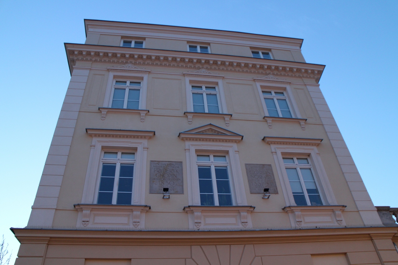 建物の壁にショパンと1830という文字と数字が書かれてプレートがあり