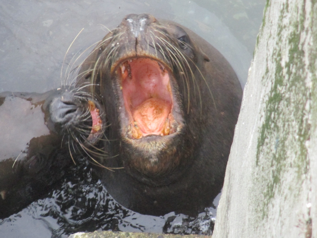 プエルトモン観光の人気スポットの魚市場があるアンヘルモ地区です。魚市場のそばでは大きなシーライオンが昼寝をしていました。