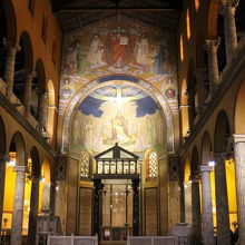 ファザードのモザイクに魅せられて入った ネオ・ビザンティン建築の教会