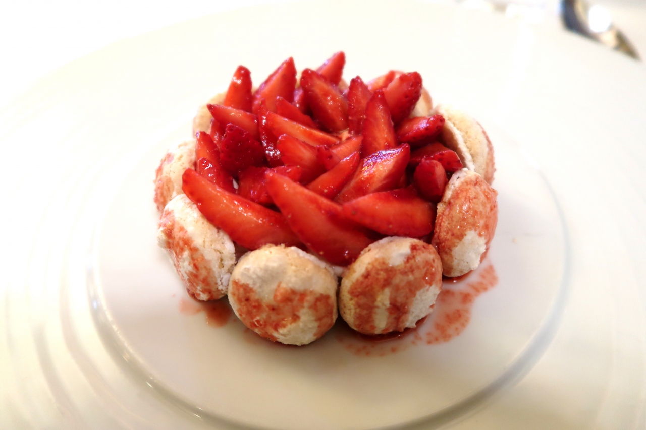 ホテルの近くに、かつて芸術家たちがひいきにしていた老舗カフェがあったので、前日にネット予約して訪れました。オペラ座の前という立地からか、入口にはバレリーナ像がポーズをとっていました。天井を飾るフレスコ画、金箔が散りばめられたゴージャスなインテリアですが、サービスはフレンドリーです。選べるメインとデザートの39ユーロのセットメニューにしました。バターは、ノルマンディー地方のイズニー社のものでした。