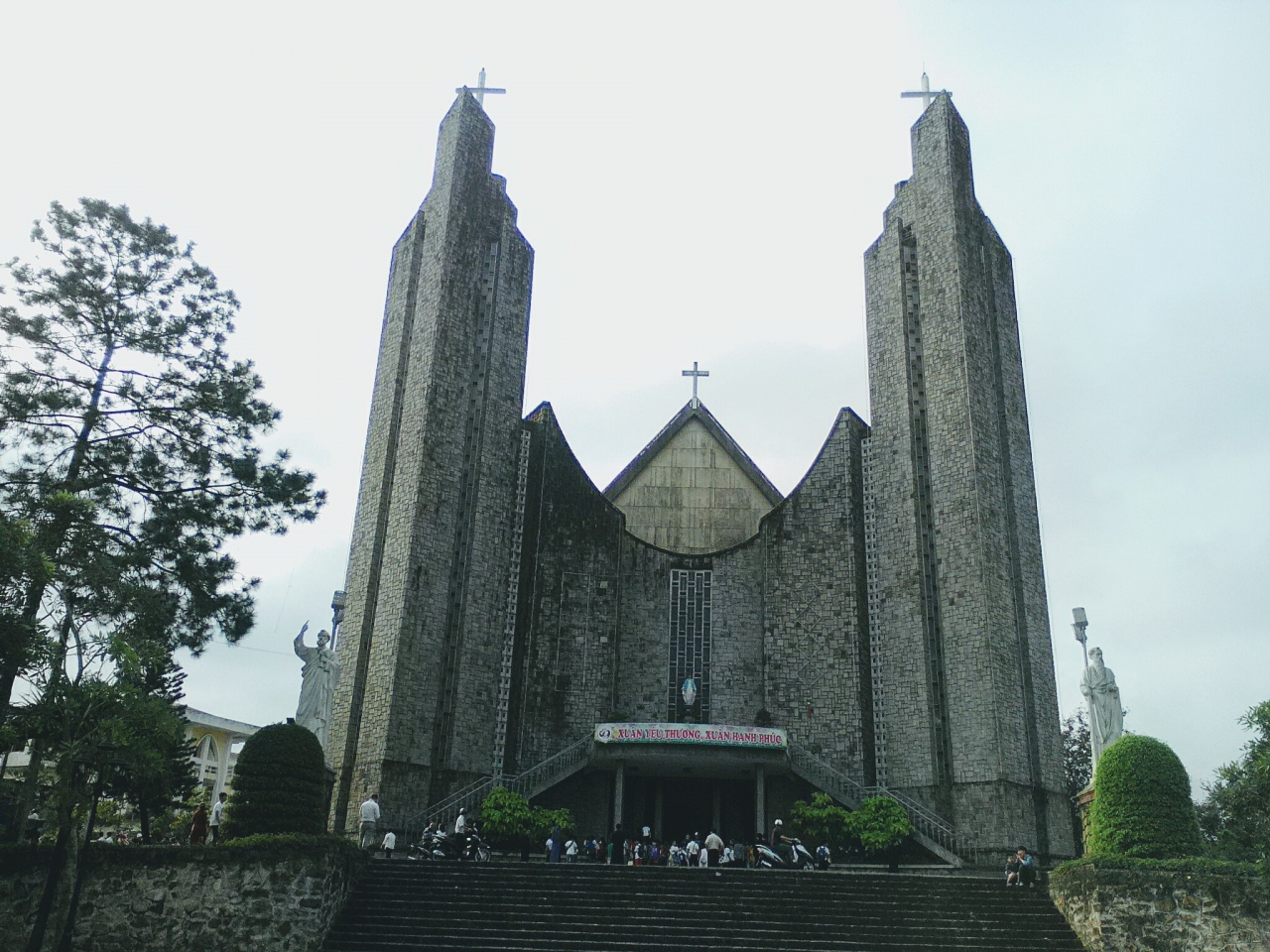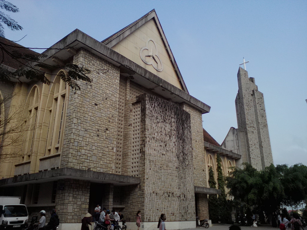 フエで一番大きな教会。その姿はまさに威風堂々、かっこいいです。日曜の朝出かけてみたら大勢の方がミサに訪れていました。