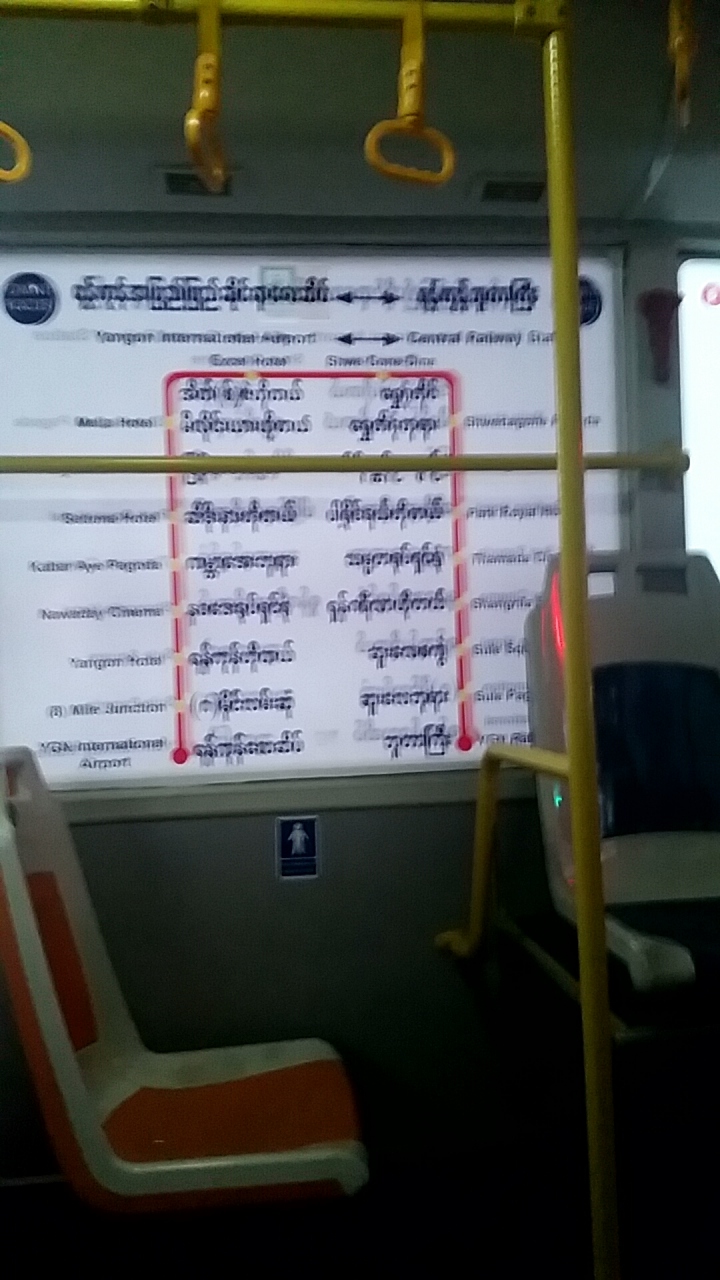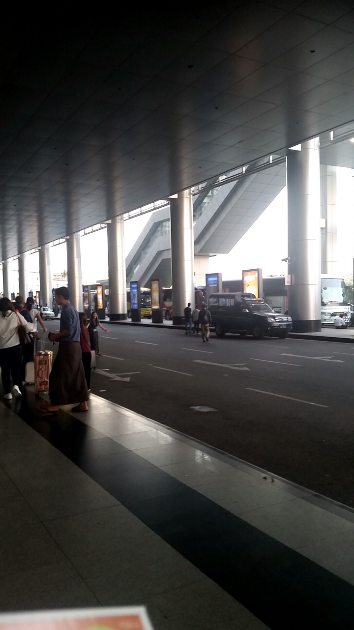 ヤンゴン空港ターミナルの3番出口を出て、4車線位の構内道路を渡って、少し右手にバス乗り場があります。