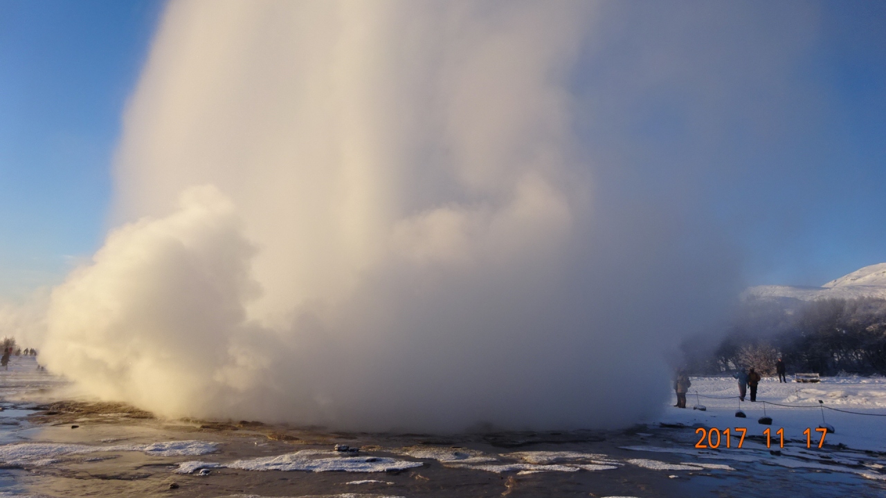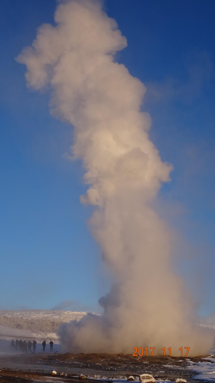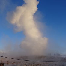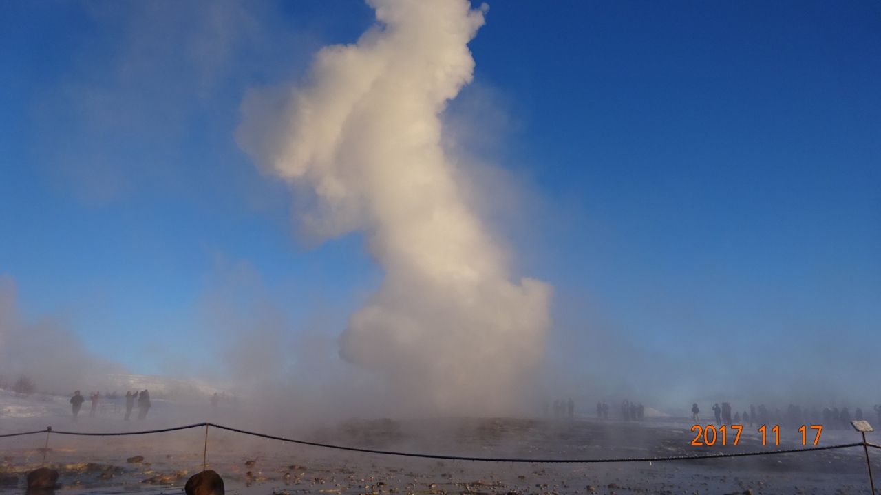 現地でのゴールデンサークルツアーに参加しました。広い場所に沢山の大小の間欠泉がありますので数分間でどこかの間欠泉が噴水しているのが見ることが出来ます。