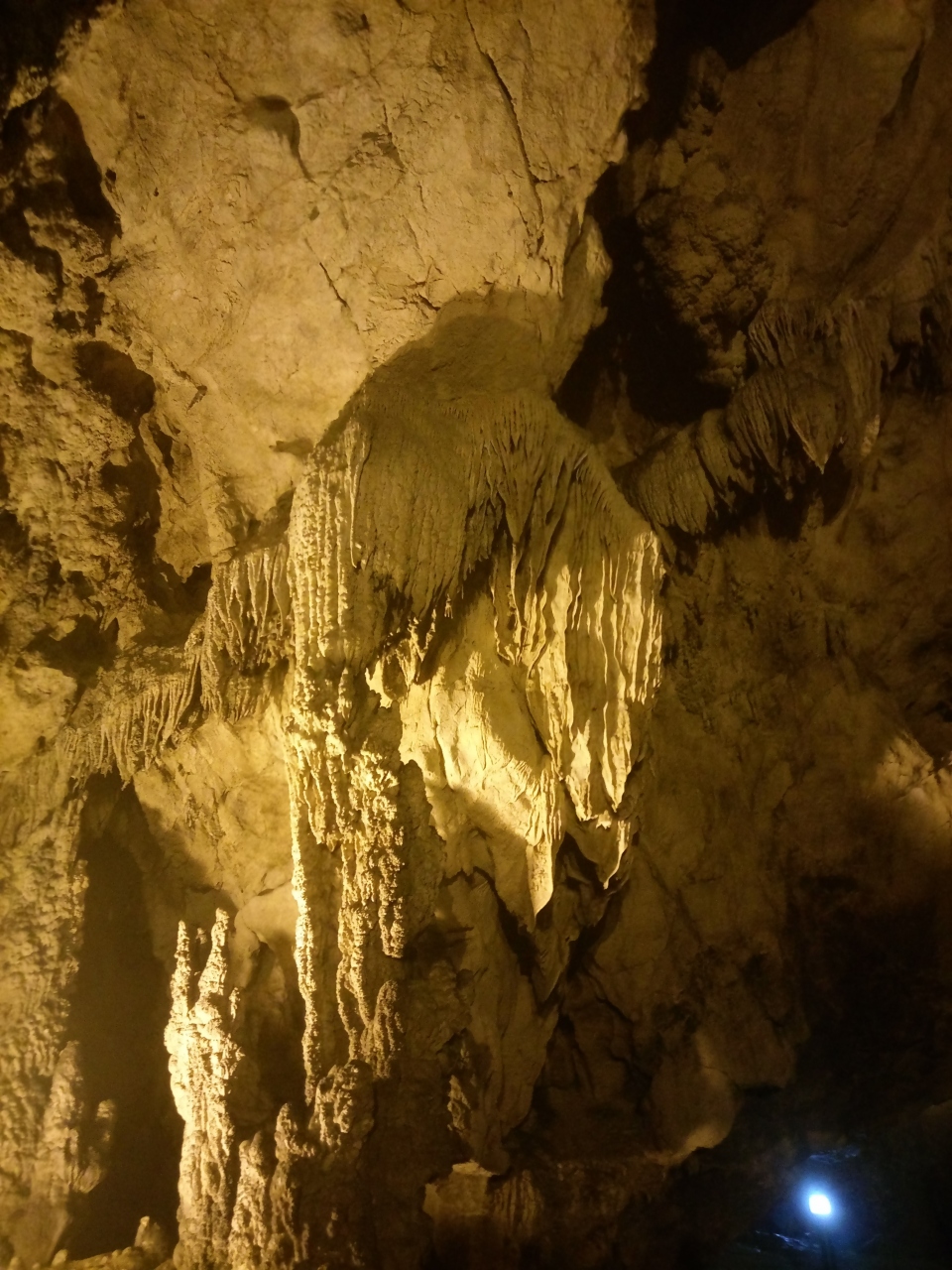 バンゾック滝の近くにある洞窟です。ツアーで行きました。今までに言った鍾乳洞とは規模が違い、とてもきれいでした。観光客は少なかったです。全長2キロほどの洞窟で、ライトアップされていた鍾乳洞はとても神秘的でした。
