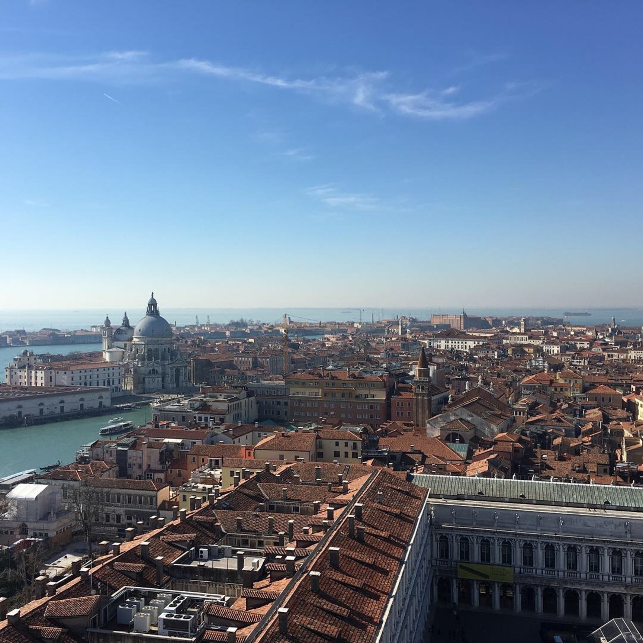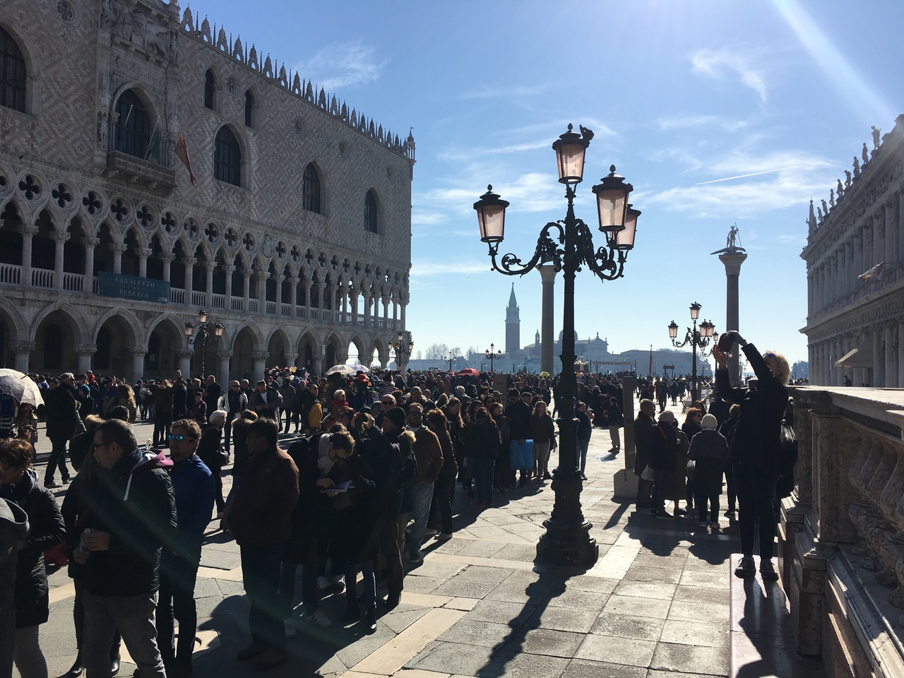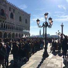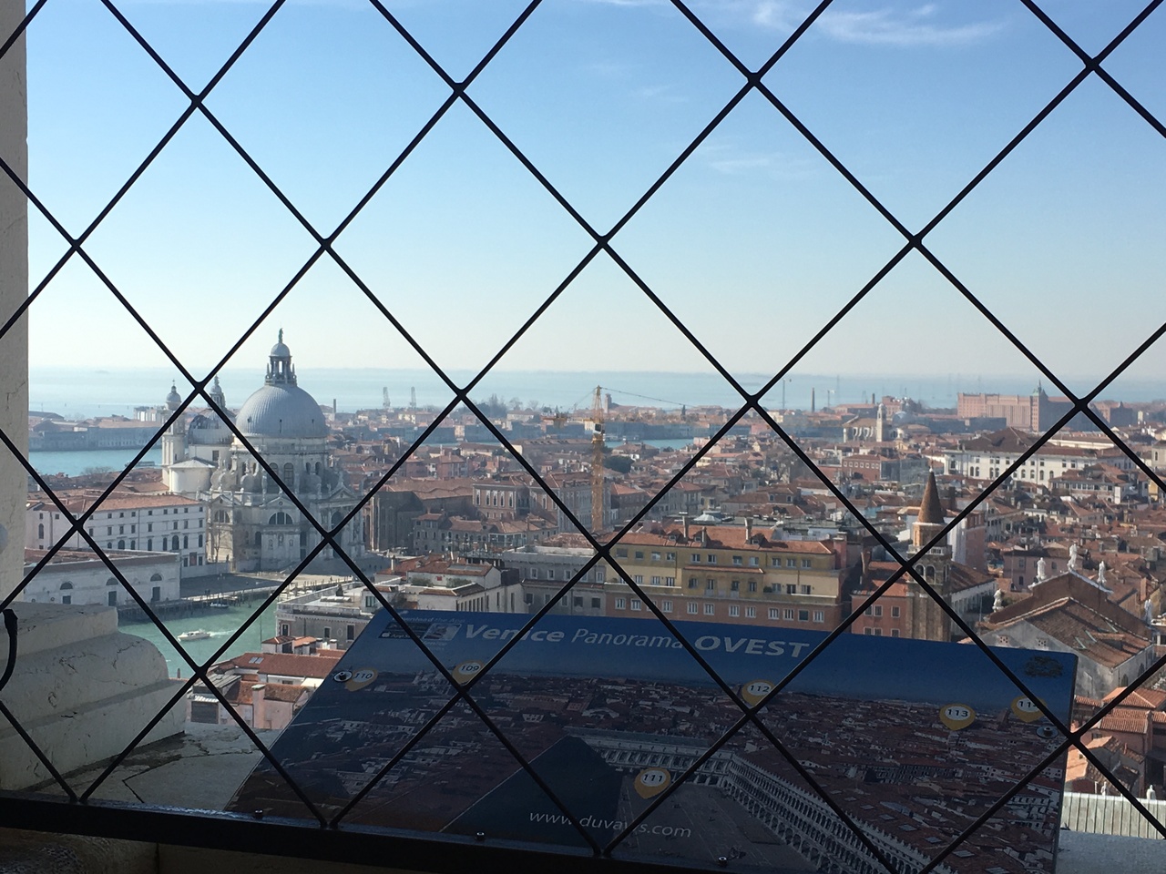 8ユーロでエレベーターで上まで上がります。並んでは、いましたが、進みは早いので30分くらいで上がれました。エレベーターが一台なので、上がるのと降りるのに少し待ちます。天気のいい日は、ベネチア全体が見渡せるので気持ちがいいです。