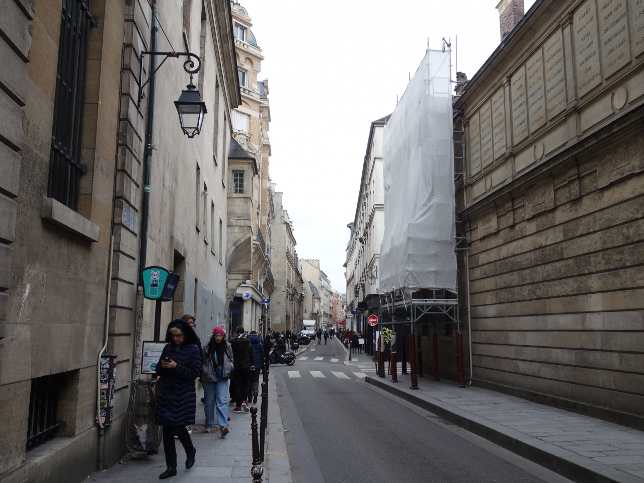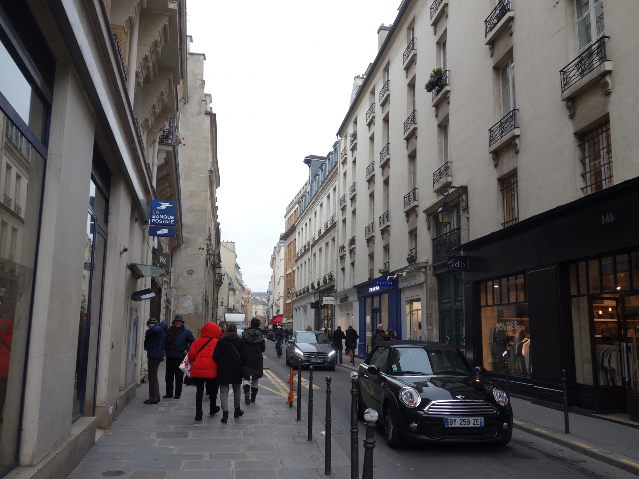 東の端はヴォージュ広場,西の端はポンピドーセンター。この二つをつなぐ東西に走る通りです。狭い通りで,クルマは一方通行の1車線しかありません。美術館やお店が並んでいるので,観光客が良く行くとおりです。マレ地区はユダヤ人街でもあったので,ユダヤ料理のお店もあります。