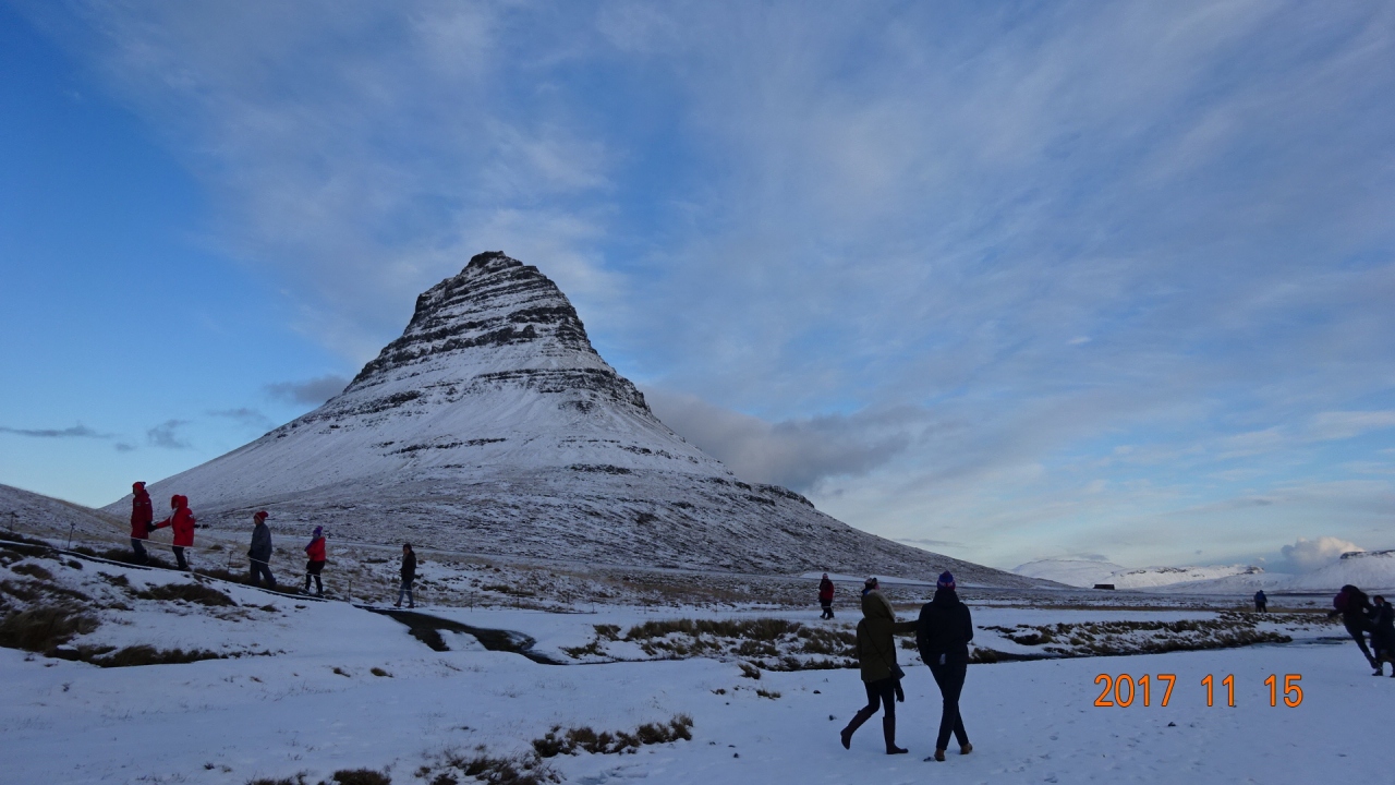 現地のレイキャビック発、日帰りのスナイフェルスネース半島観光ツアーに参加しました。私達のアイスランド旅行の主な目的はオーロラ観光でしたので、昼間の旅行はどちらかと言えば、「おまけ」のようなものでした。しかし、到着翌日の最初の観光ということもあり「初アイスランド」の魅力に大感激でした。その日の天候は曇り、雪、晴れ、吹雪と目まぐるしくかわる天気でしたが、いかにもアイスランドらしいところでした。