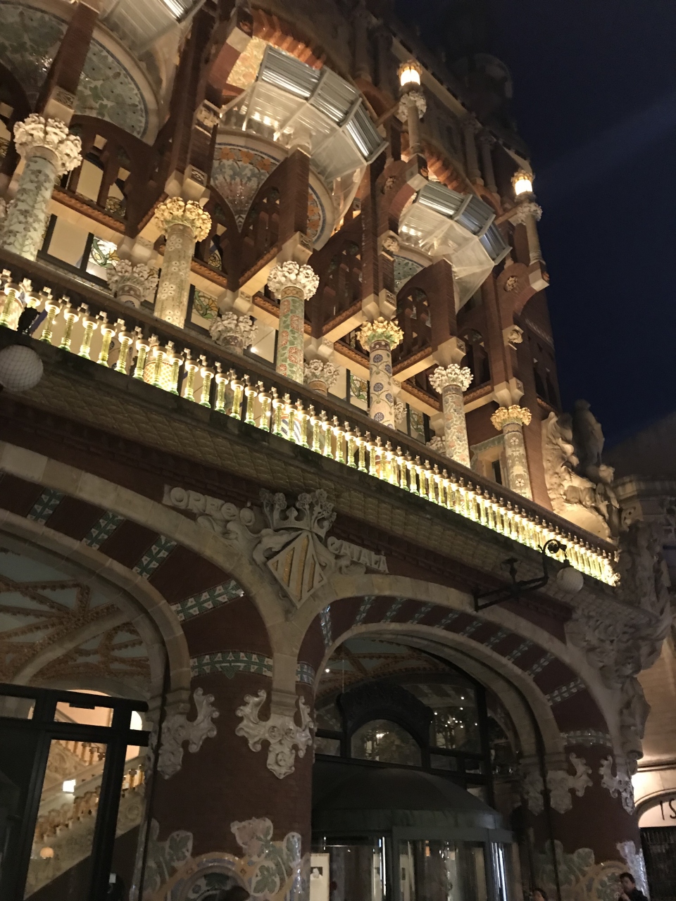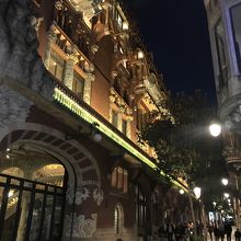 カタルーニャ広場から徒歩で10分くらいです。大通りから入った小さな通り沿いにありました。かなり大きいので、近くからでは全体が写真に収まりません。外観のみ見学でしたが、建物を間近に見られるので、彫刻や柱の模様などの細部の美しさを楽しむことができました。夜はライトアップされていました。