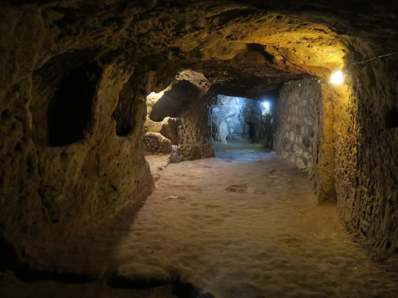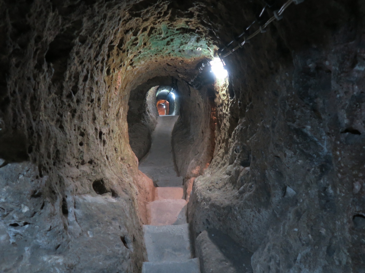 砂のような岩のような地質の中に小部屋が沢山彫られていて、なかなか面白かったです。自分は身体が大きなほうなので、かがんだり、アップダウンのある地下階段を行き来するのがちょっと辛かったです。