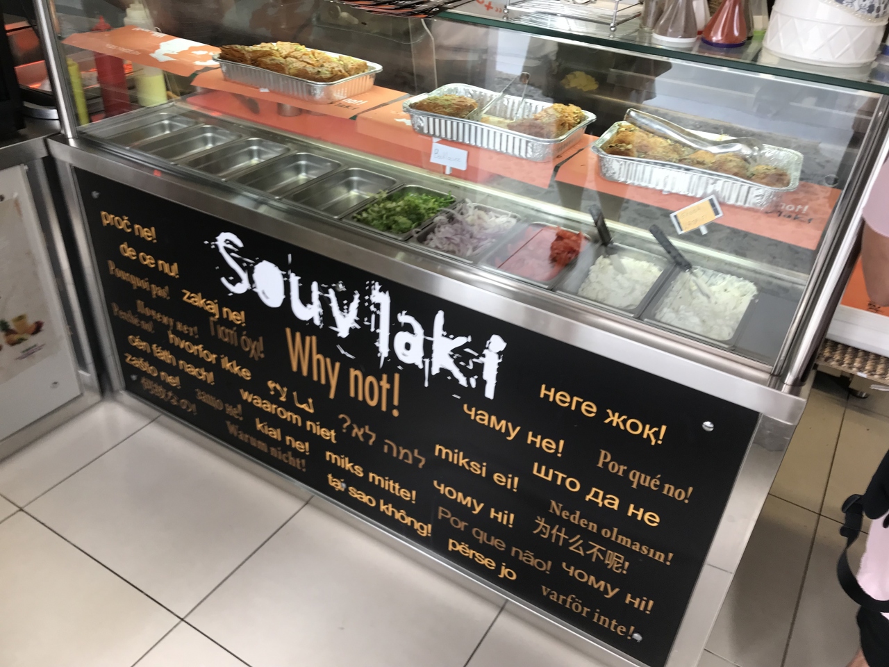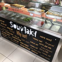 テイクアウトのほか、イートインコーナーもありました。手軽にギリシャの名物料理をいただけるお勧めの店です。メニューは、ギリシャ語と英語でした。