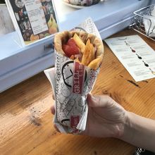 ギリシャ名物のスブラキのお店です。イメロヴィグリから歩いてフィロステファニへ向かう途中にありました。肉やポテト、野菜などをピタで包んでいただくもので、具の内容で値段が変わります。