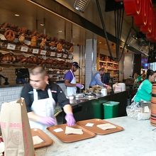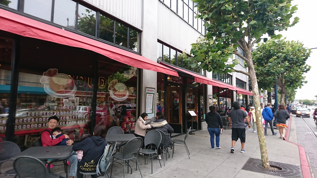 サワードゥ・ブレッドと呼ばれる特有の酸味と風味を持つパンで有名な1894年創業のベーカリー。この特製のパンをくりぬいてクラムチャウダーを流し込んだ「クラムチャウダーボウル」がサンフランシスコ名物。フィッシャーマンズ・ワーフのマスコット的なお店で、昼時を過ぎても結構混雑します、クラムチャウダーは、海の幸とクリームスープが合わさって濃厚な味に。酸味の効いたパンに染み込んいて美味。しかし、サイズは完全にアメリカンなので、日本人が一人で食べるにはかなりのボリュームありと考えた方がよいかも。2階のビストロでも同じものが食べられますが、作っているところが直接見ることもできるので、こちらの方がよいです。