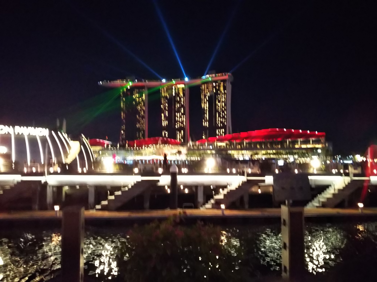 シンガポールと言えば、マーライオンとこちら、マリーナベイサンズですが、お昼の到着時には、そのスケールに驚かされ、夜には、本当に綺麗なライト&ウォーターショー(SPECTRA)に圧倒されます。