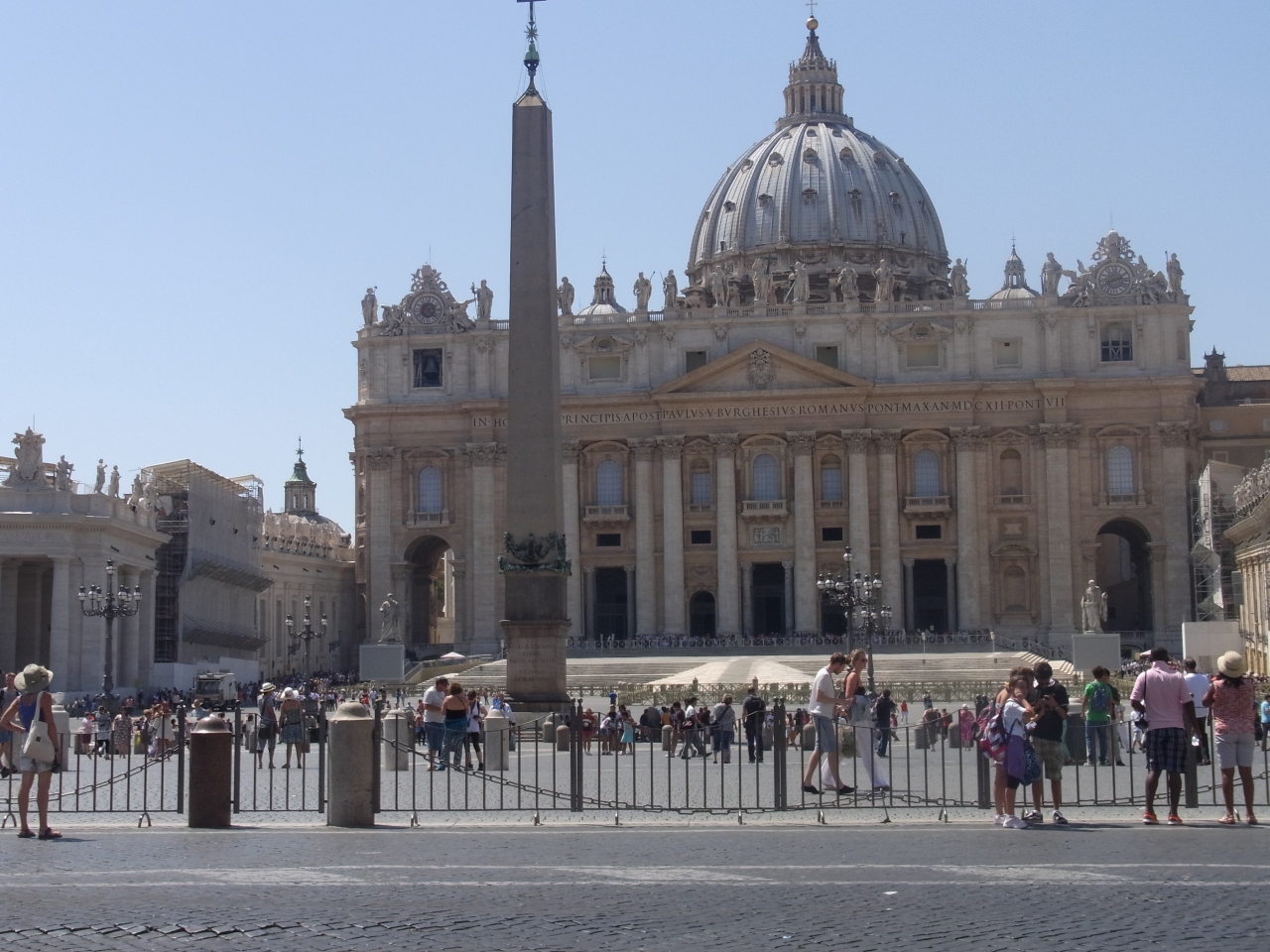 バチカン大聖堂などの前に広がるサンピエトロ広場があります。かの有名なバチカン市国ですが、ローマから出入り自由で別の国という雰囲気もわかりません。ジェラートやパニーニの屋台が近くに出ていて休憩することも可能です。