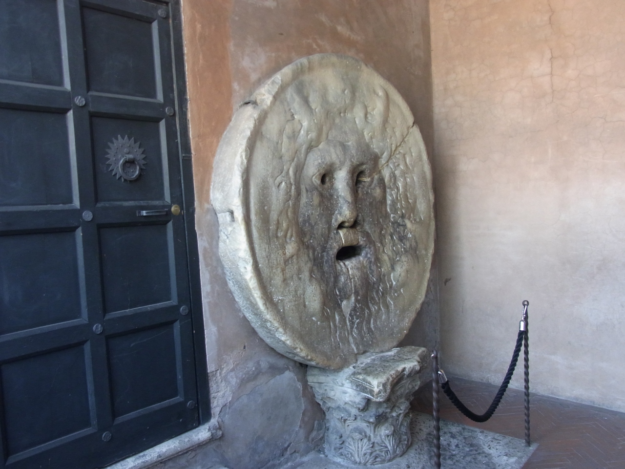 サンタマリアインコスメディン教会にある真実の口です。幾度となくテレビでみたものです。午前中早くの込まない時間帯を狙ったおかげかそんなに並ぶこともなく手をお口様に突っ込こませていただくことができました。