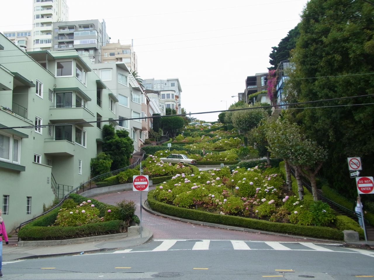 TVなどでもみたことのある世界で一番カーブの多い道です。上から下への一方通行だったとおもます。観光客も果敢に車でチャレンジしていましたよ。私は上から下へ歩きました。車道は車がいるのであるけません。よくここに住んでいるなという感じがします。