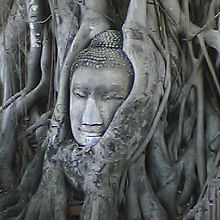 バンコクから日帰りパッケージで参加。最も有名なのは大樹に覆われている仏様の顔。