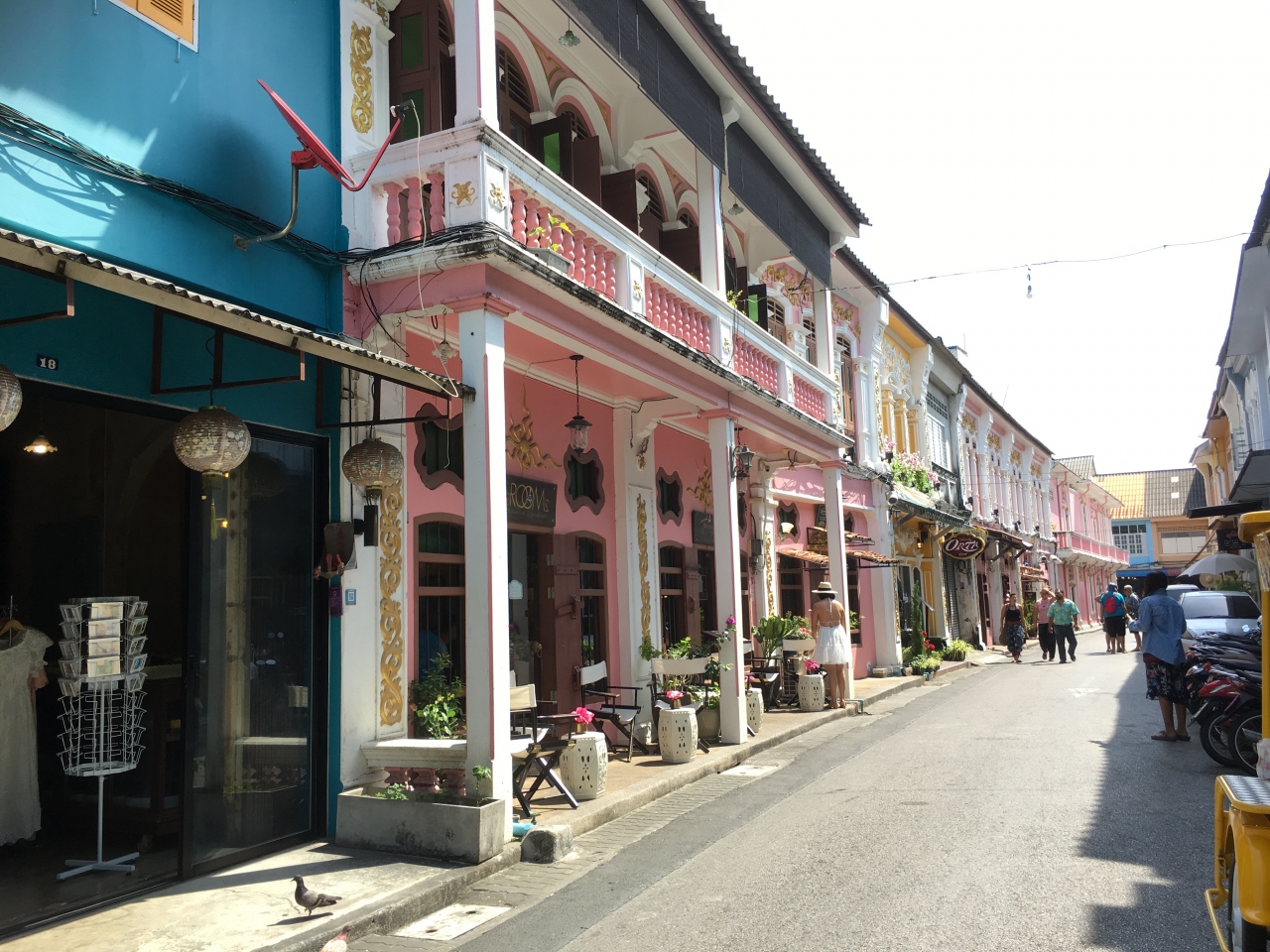 中国と西洋が入り混じったような建物が並び、タイというよりマレーシアのペナン島やマラッカに似た感じです。地理的にも近いので、マレーやニョニャの影響が強いのでしょう。