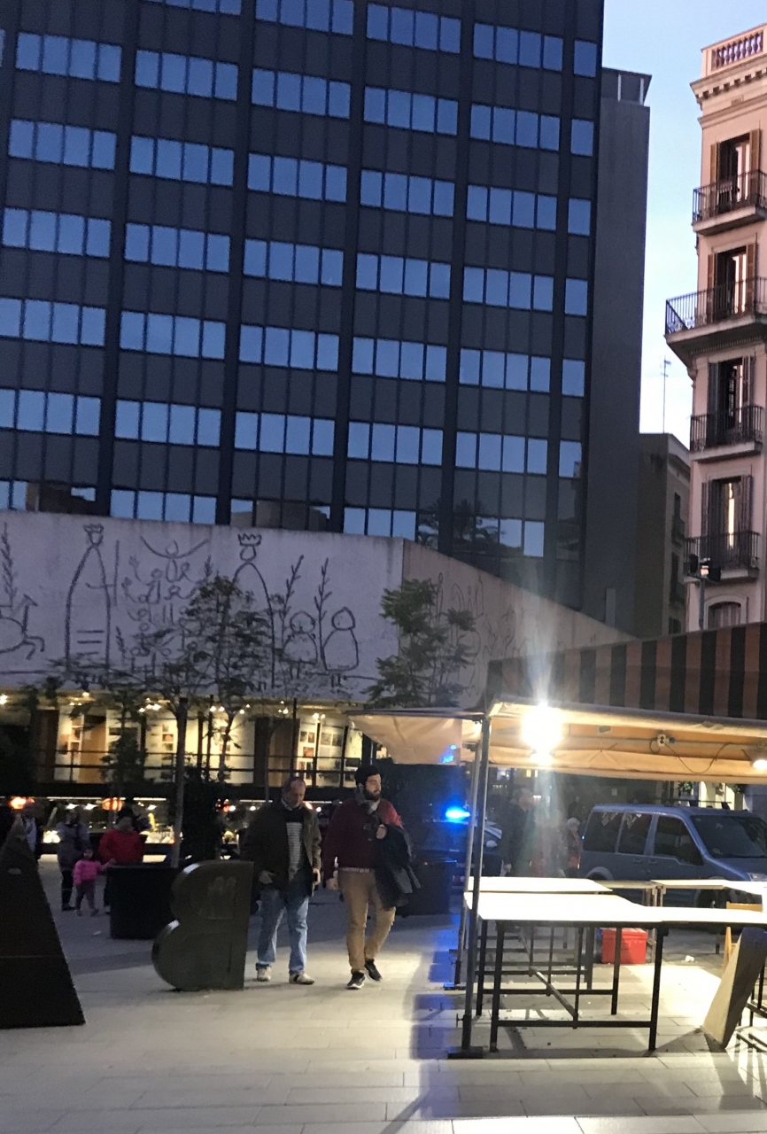 カテドラルの正面にある建物です。カテドラル前の広場を挟むようにして建っています。ピカソの壁画があることで有名です。壁画は、通りに面している三方面に描かれています。街に馴染んでいて、それと知らなければ、見落としてしまいそうでした。