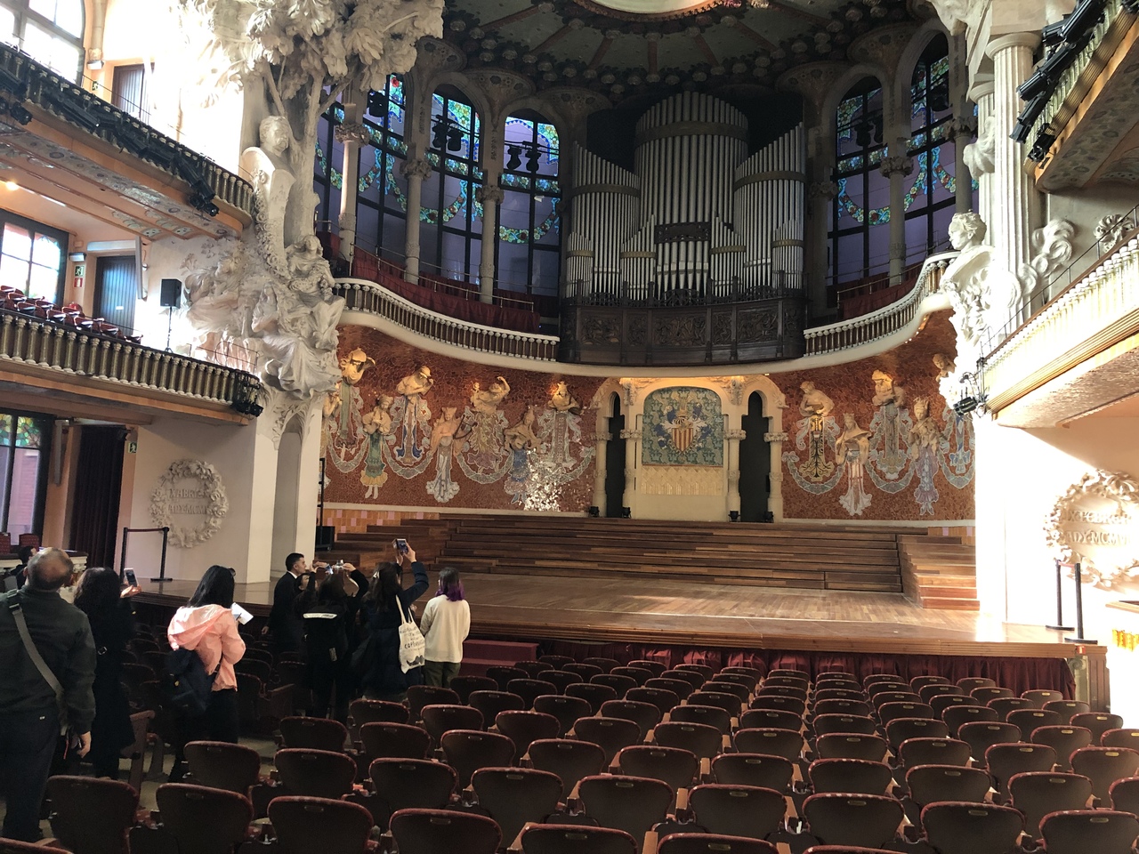 天井の一部にバッハやモーツァルトなどの名前が書いてあるのですが、タイル貼りなのがスペインらしいなぁと感じます。