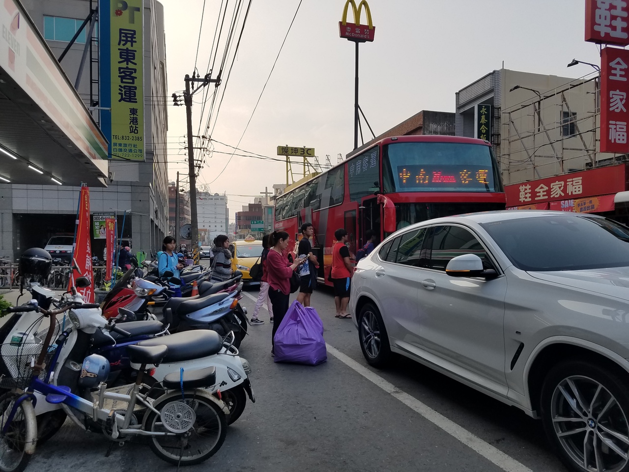 バス停といっても普通の道路で周りはお店とかだけしかなく、正直東港駅からどこか行くとしたらちょっとたどり着けるか自信ないです。