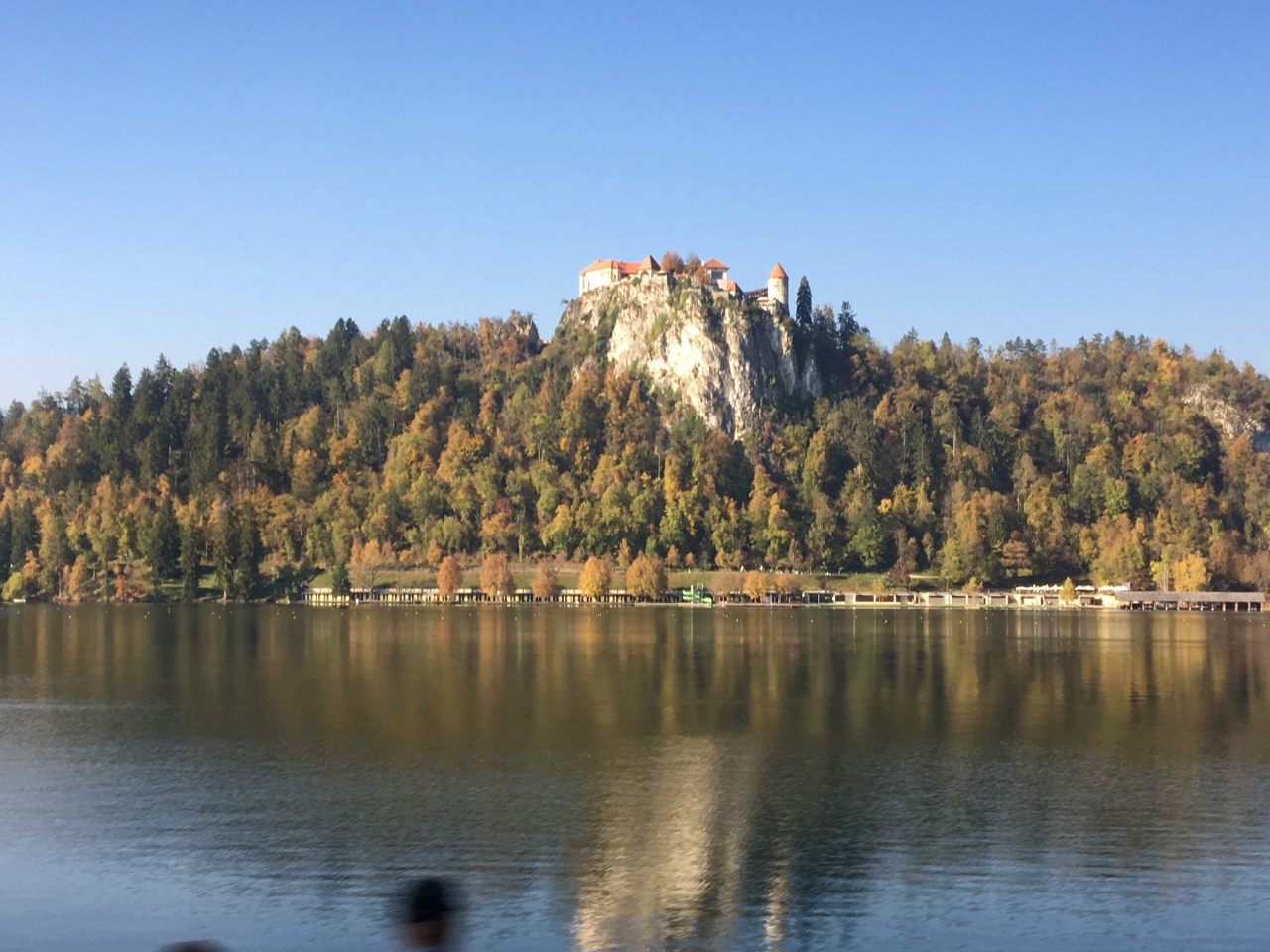 スロベニア、ブレッド湖の対岸に断崖にに聳え立つお城