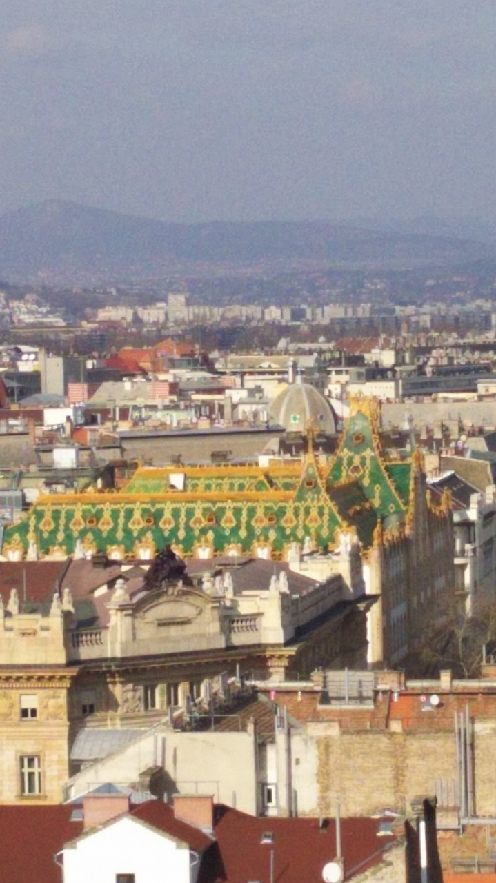 レヒネル・エデンの代表作です。ヘレンドとならぶハンガリー陶器の工房のジョルナイ製のタイルで彩られた屋根が美しい建物です。地上からだとその屋根の美しさを見ることができませんので、聖イシュトヴァーン大聖堂の展望台に登ると、グリーンの美しい屋根を見ることができますよ!明らかに他の建物の屋根と色が違うのですぐに分かります!