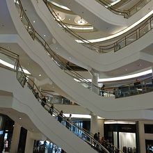 パウエル・ストリート駅直結のショッピングモール。「ノードストロム」と「ブルーミングデールズ」の2大高級デパートをはじめ、ブランド品、化粧品、靴、雑貨など180のさまざまなショップと映画館などが集まっています。天井までの吹き抜けの店内と、世界初のらせんじ状のエスカレーターは、高級感があります。観光の場合、必ず行かなくてはならない場所ではありませんが、インドアのモールであり、食事やお茶をする場所も多いので、天候の悪い日や暑い日、寒い日にはちょうどよい。日本のビアードパパ(シュークリーム)やBakeチーズタルト、味千ラーメンなども入っています。